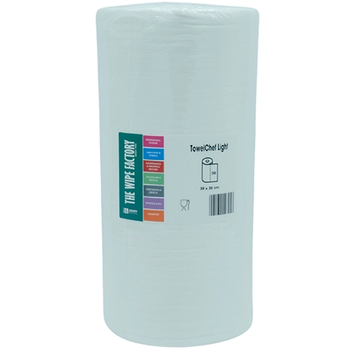 TowelChef Light is a highly absorbent wiping cloth textured with small apertures. It is used in the catering, kitchen and medical sectors. It has a cloth-like feel and is very soft both wet and dry. Its texture enables it to dry quickly.